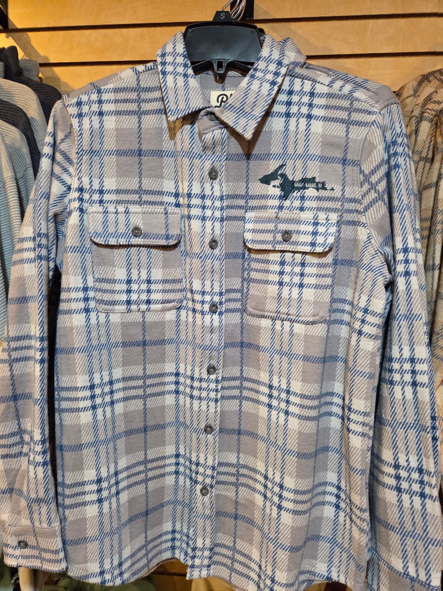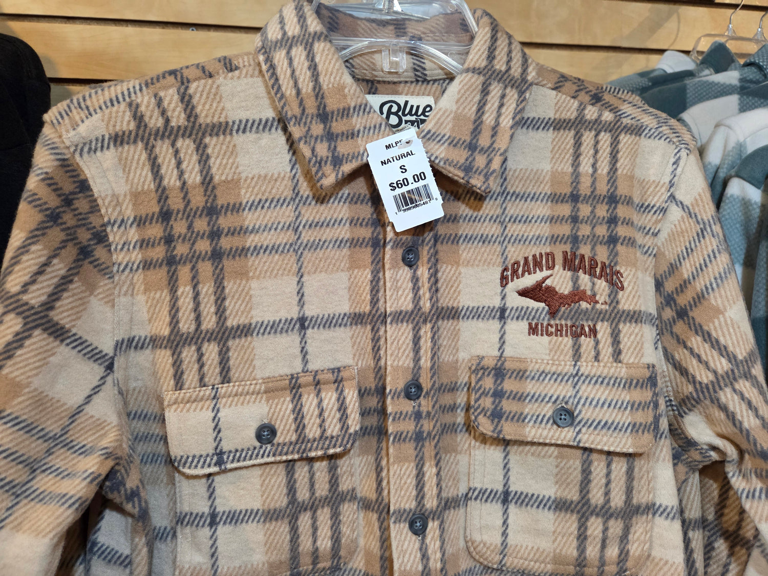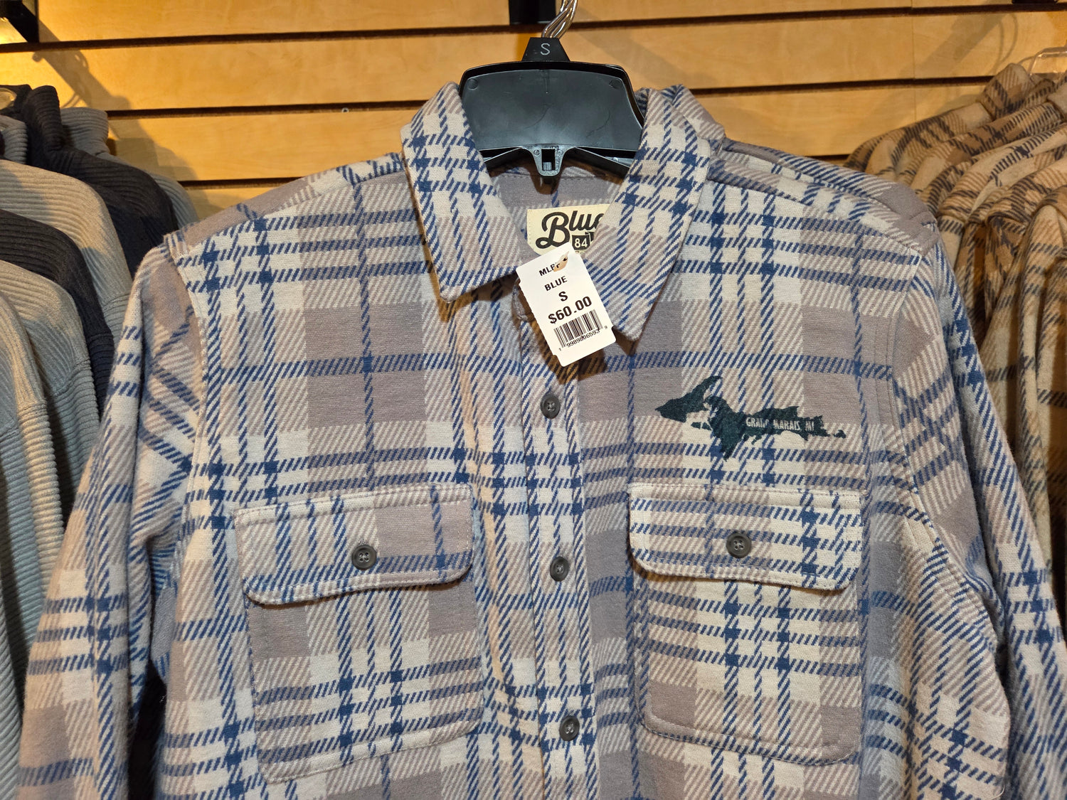 Soft and sturdy knit flannel long sleeve shirt. Keep warm in style with buttons down the front as well as a the wrists. 2 chest pockets with button closure. Blue 84 brand 80% polyester, 17% rayon and 3% spandex provide just enough stretch to keep comfy. Our favorite of the winter styles. Unisex size. Blue shirt logo over left chest pocket is screen printed, while the natural brown logo is embroidered